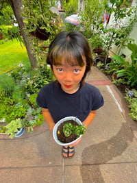 plant pictured: rose succulent (greenovia dodtrantalis)